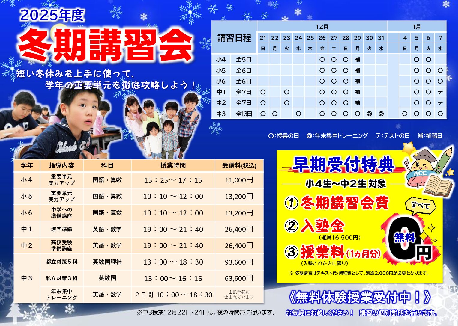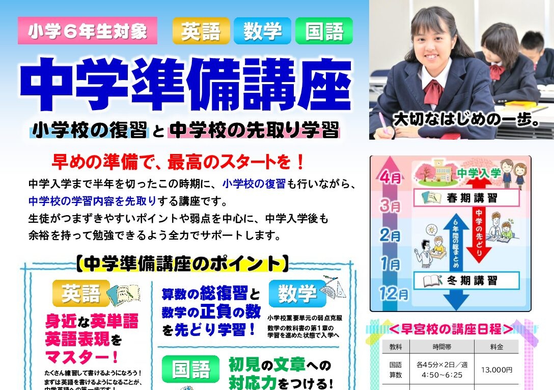 | 中学部 | 中学1年~2年 | 英・数・国 60分×5/週 |
