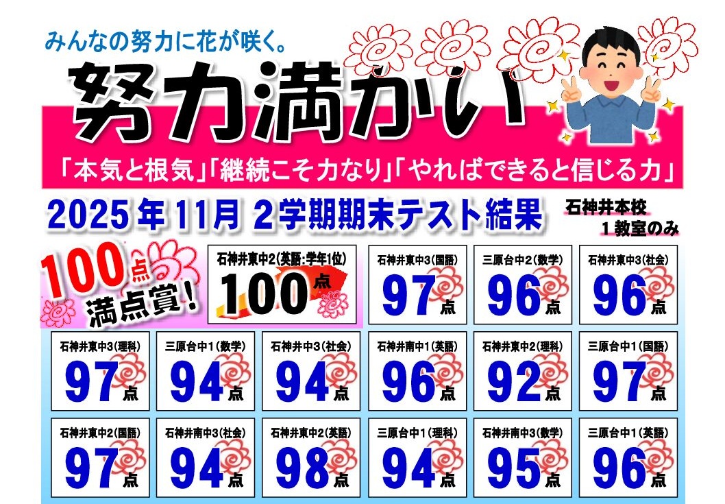 【定期テスト】2学期期末テスト結果